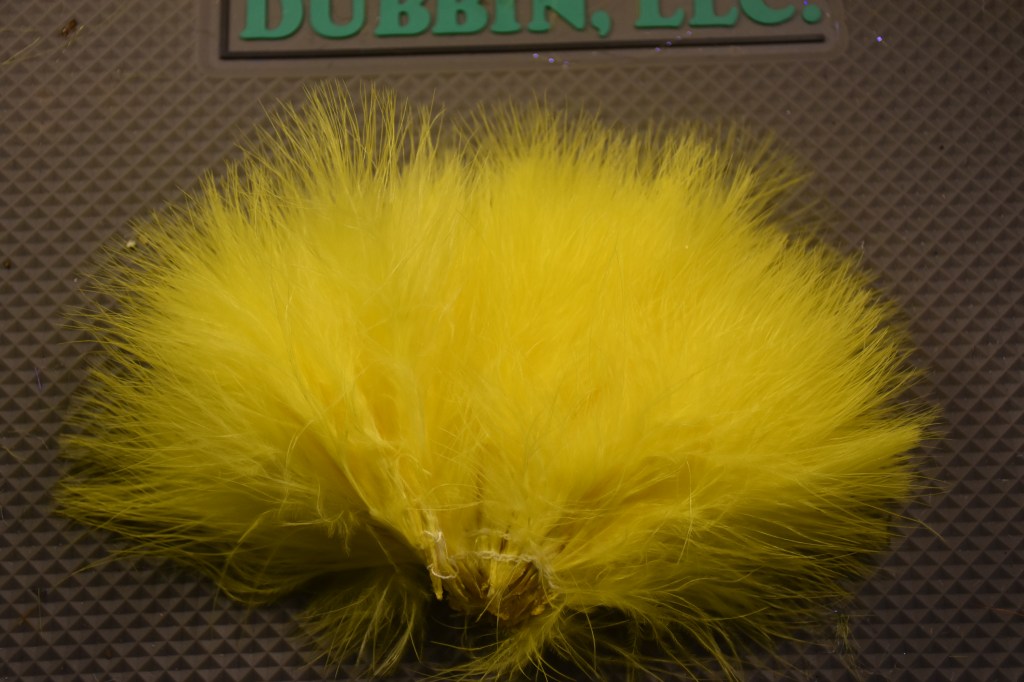 Marabou is the most common or most traditional of popper tail materials. In the early days this was the standard material for most top water patterns. The two main advantages of marabou are density, in short tails, and undulation in the water. Marabou is so pliable that you can get a better tail on shorter patterns. Its harder to get that bulk with natural fur without having to large of a tie off point on the hook. Marabou also has great action even when a fly is stationary.