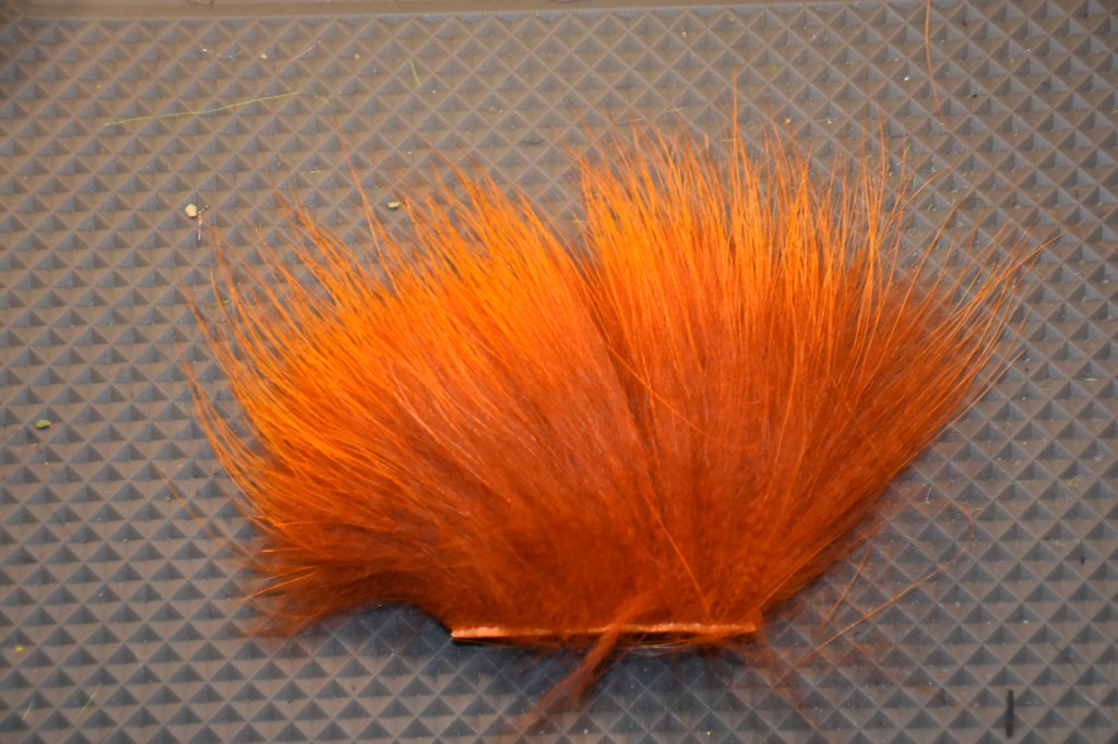 The above is an image of Finnish Raccoon fur. I use this on most of my Double Barrel poppers from Flymen Fishing Company. These popper heads are ideal for natural fur tails as they are extremely buoyant and have a larger profile in the water. Note: When tying this material you have to be cognizant of tail length as long tails will foul on the hook during our cast. When I need longer tails I use a mono loop to keep fouling to a minimum.