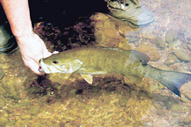 October is probably the best single month for fishing here. A minnow imitation will bring plenty of fish to your hand. The smallmouths have the feedbag on and feed aggressively.